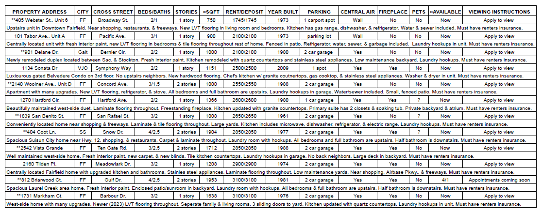 Please respect the privacy of our tenants and do not go onto a property. You must apply before we can set up appointments to view on homes that are available.